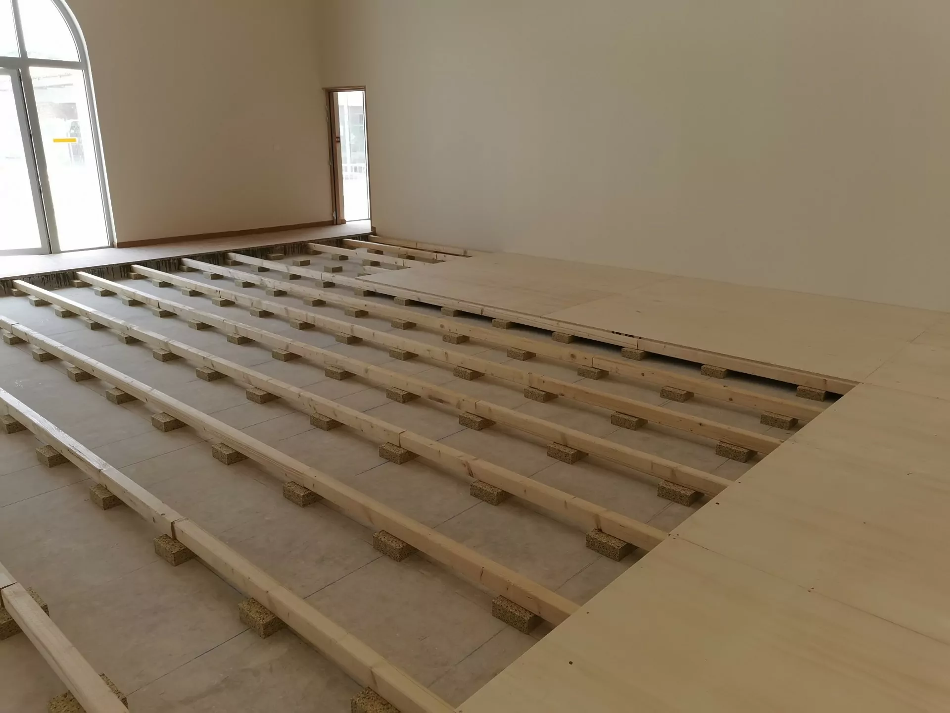 Plancher de judo composé de plaques de CP bois épaisseur 18mm