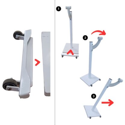 Socle à roulettes, amovible, à visser sur l‘embase du potelet de danse autoportant pour en faciliter son déplacement lors de la mise en place et du rangement
