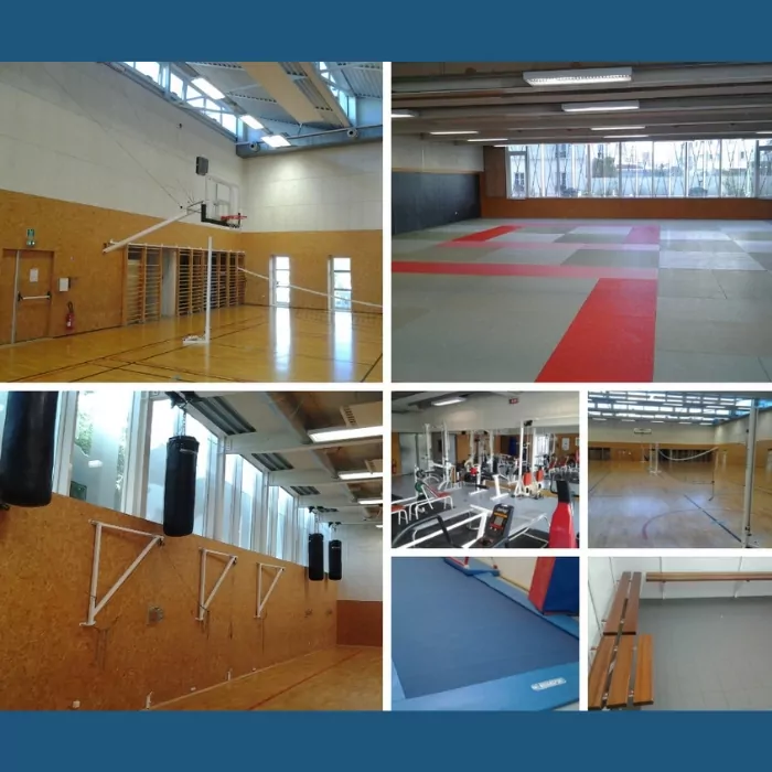2 salles sport-co, 1 dojo, 1 salle boxe, 1 salle gymnastique, vestiaires