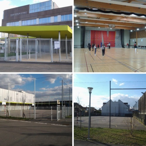 | Descriptif des installations : | Basket charpente, protection murale, séparation de salle, poteaux de volley, chrono, bancs vestiaires, terrain multisports, tatamis, miroir, etc… |