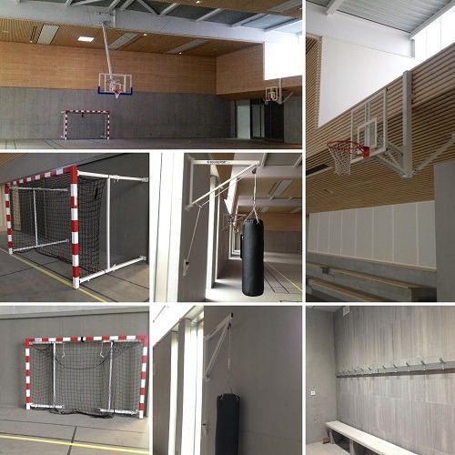 | Descriptif des installations : | Basket avec télécommande électrique, hand, basket latéraux, Vestiaires, Potence de frappes, Badminton, Volley, Cloisons de séparation |
