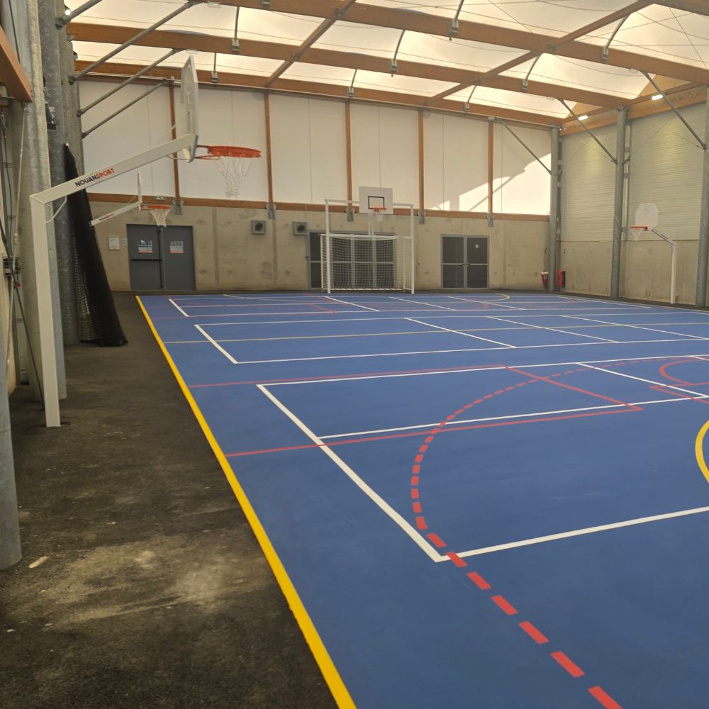 | Descriptif des installations : | Fourniture et pose de combines hand/basket, buts de basket extérieurs et filets pare ballon |