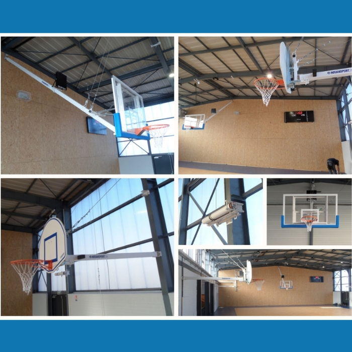 | Descriptif des installations : | 2 Buts de Basket relevables en charpente et 4 Buts de Basket d’entrainement rabattables, 1 tableau d’affichage électronique avec fautes individuelles |