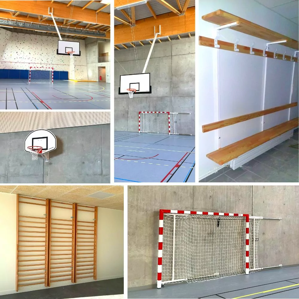 | Descriptif des installations : | Restructuration et extension du lycée agricole – phase 2 : Salle de sports : buts de basket relevables en charpente, buts de basket muraux, buts de hand mobiles, buts de hand rabattables, rideaux motorisés relevables en charpente Salle de musculation : espaliers Vestiaires : bancs et patères |